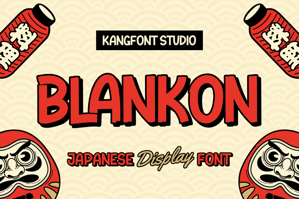 Discover Blankon, a bold and eye-catching Japanese display font designed to bring a unique touch to your projects! With its strong, hand-drawn characters inspired by Japanese culture, this font adds a fun and playful vibe to posters, packaging, branding, and more.