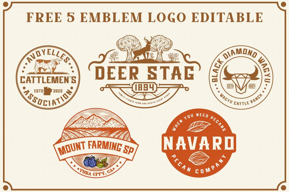 This font is also equipped with a bonus of 5 editable logo emblems suitable for your business.