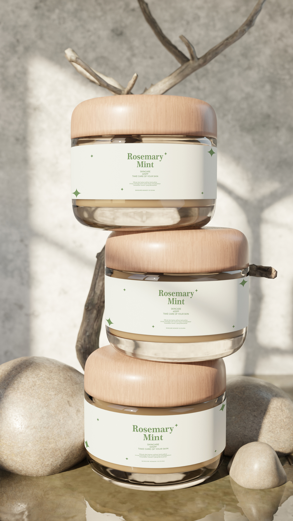 Stacked Skincare Jar Mockup – Minimal & Natural Aesthetic (PSD)